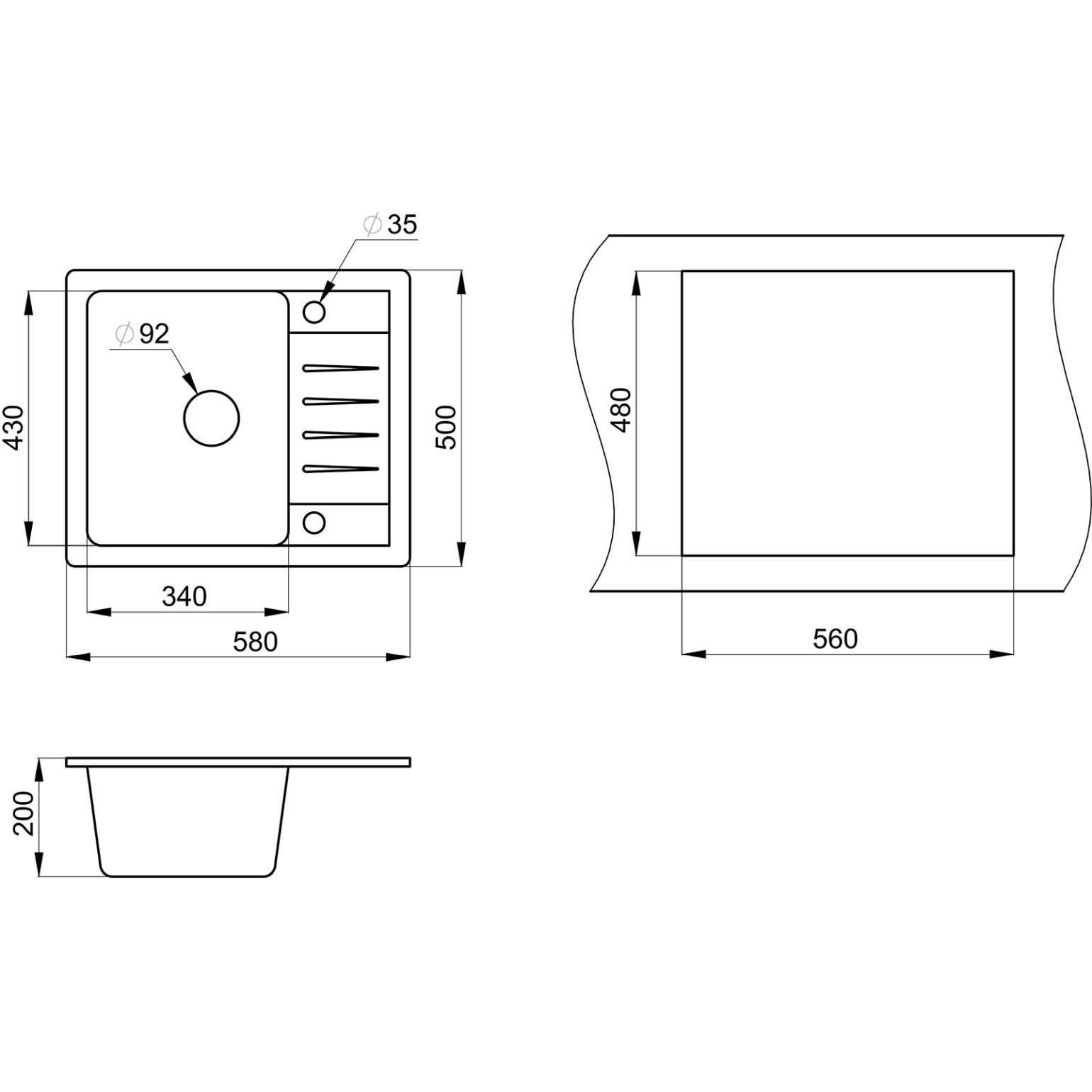 СохранитьКухонная мойка кварцевая Granula ST-5803 прямоугольная с крылом, стандарт, чаша 340x430, цвет классик (5803cl) интересное: