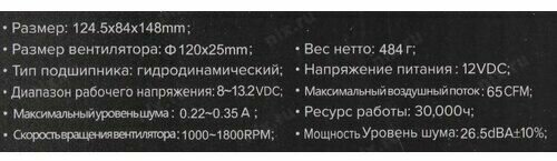 | Диаметр вентилятора | 120 мм |