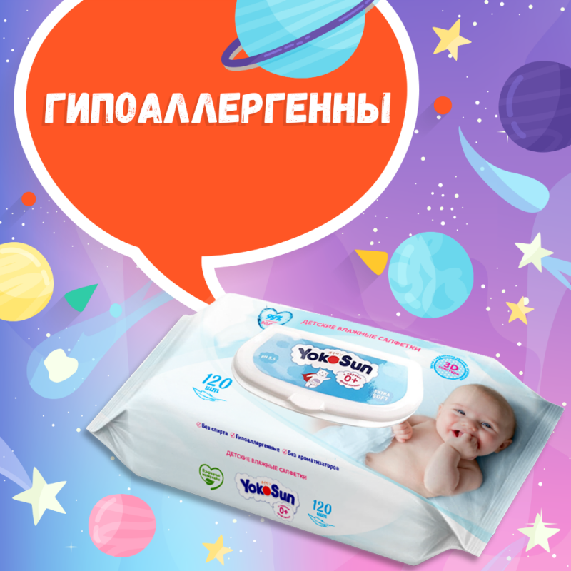 Детские влажные салфетки YokoSun гигиенические, 120 шт.