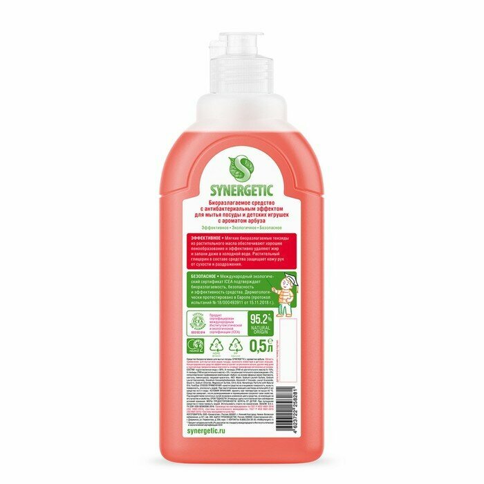 Средство для мытья посуды Synergetic Антибактериальное, Сочный Арбуз, 500 мл, флип-топ (103055)