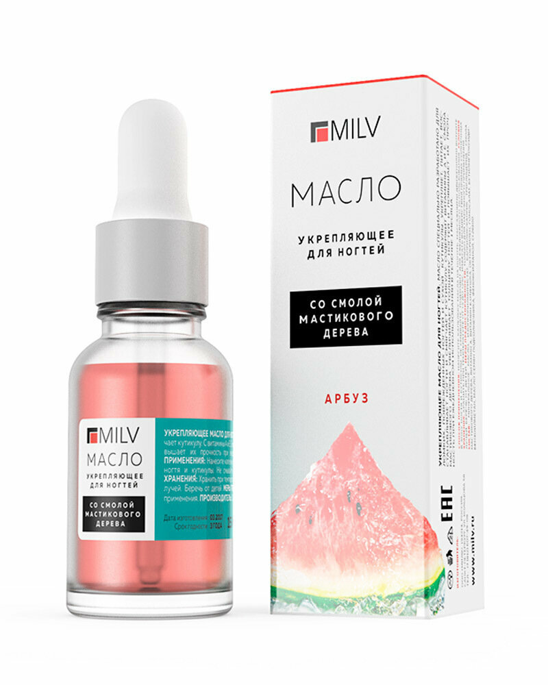 Купить MILV Укрепляющее масло для ногтей Milv со смолой мастикового дерева "Арбуз", 15 мл