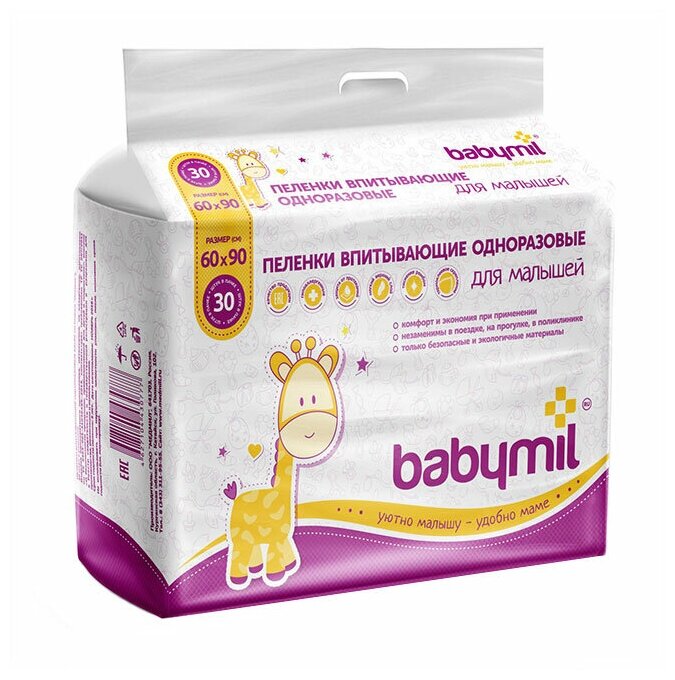 Пеленки одноразовые впитывающие BABYMIL 60х90см 30 шт