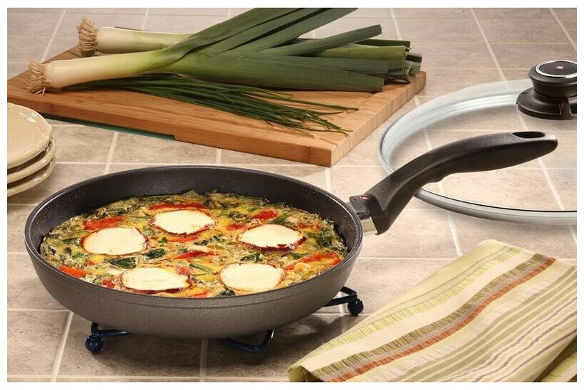 | Минусы: | Для высокотемпературной жарки не подходит (или испортите сковороду), т.е. всякие стейки-корейки – это не сюда. |