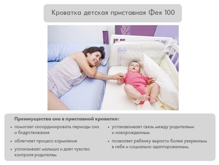 Кроватка детская приставная Фея 100, белый интересное: