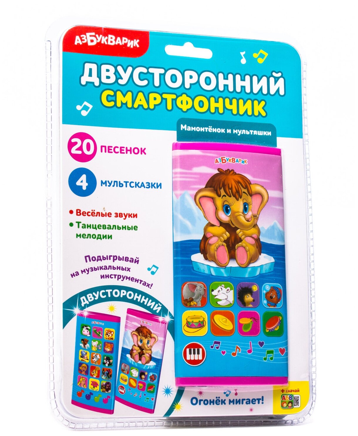 Смартфончик двусторонний "Мамонтенок и мультяшки" Азбукварик 28195-7