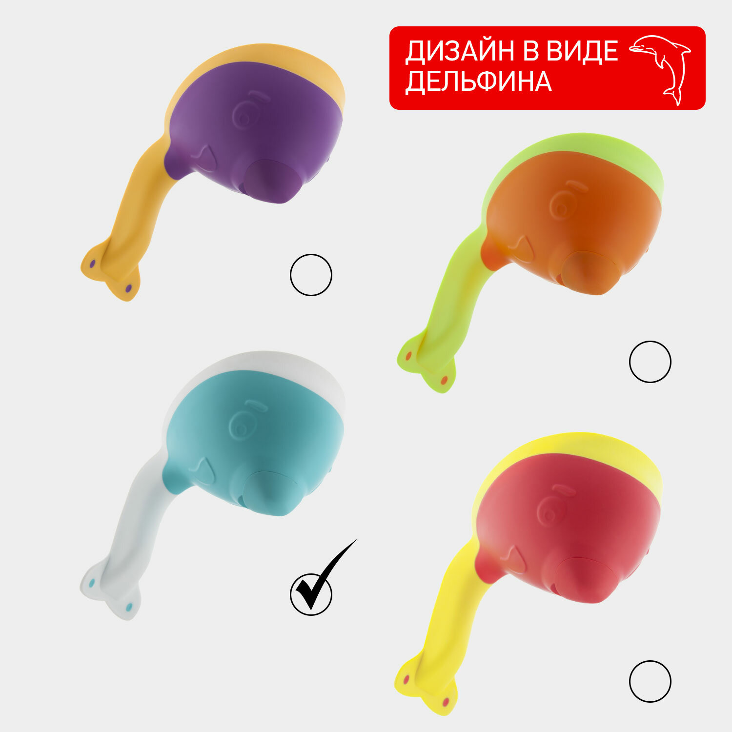 | Отзыв: | Классный ковш для ванны, очень удобно мыть голову ребёнку, особенно если малыш не любит мыть голову и плачет. С ковшом можно отлично играть, развлекать ребёнка в ванной, показывать как течёт вода из лейки, дать погрызть ковшик и в процессе игры спокойно и без истерик помыть голову. Ковш похож на кита, у него есть хвостик и глазки, он у нас как отдельный персонаж для игры. И в ванной смотрится очень симпатично. Края у лейки мягкие, ими нельзя пораниться |