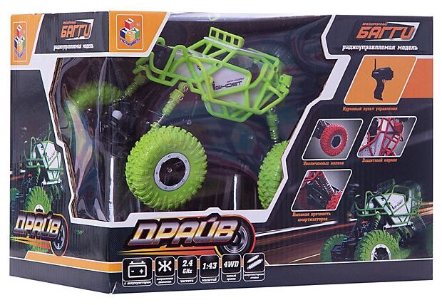 Машина на р/у 1Toy Драйв, раллийная, бигвил, 2,4GHz, 4WD, с АКБ, зелено-белый (Т10947) интересное:
