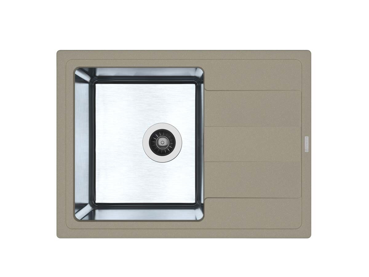 Мойка для кухни врезная каменная с чашей из нержавейки Florentina КОМБИ-650, цвет шампань, с крылом, прямоугольная, 650х480х235 мм