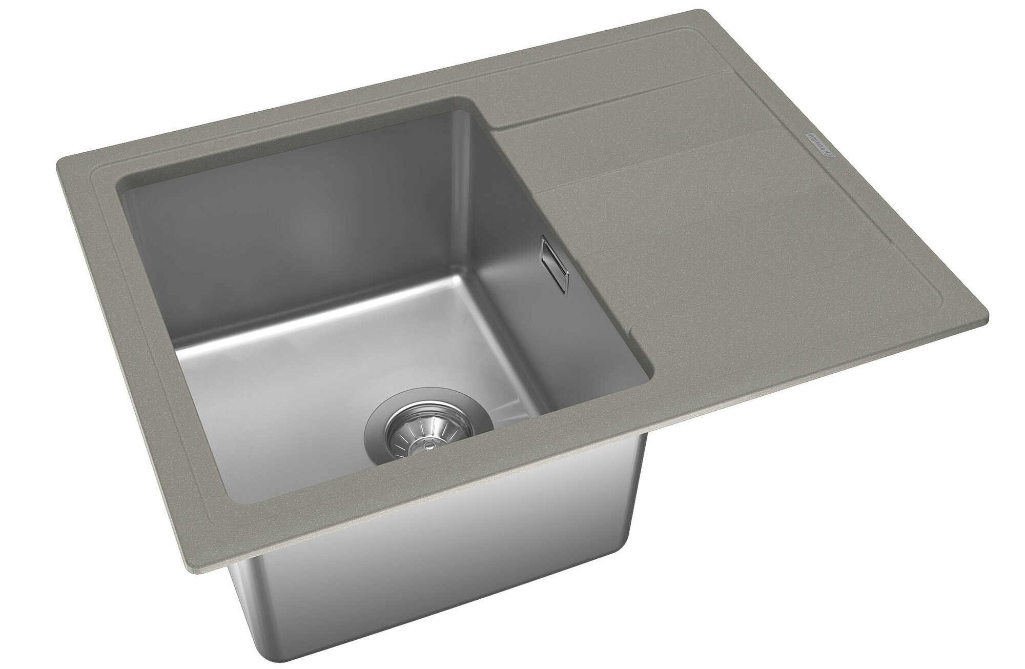 Мойка для кухни врезная каменная с чашей из нержавейки Florentina КОМБИ-650, цвет грей, с крылом, прямоугольная, 650х480х235 мм
