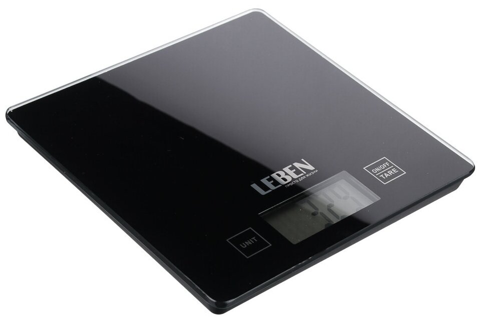 Весы кухонные электронные LEBEN, стеклянная платформа, максимальная нагрузка 5кг (точность измерения 1гр)