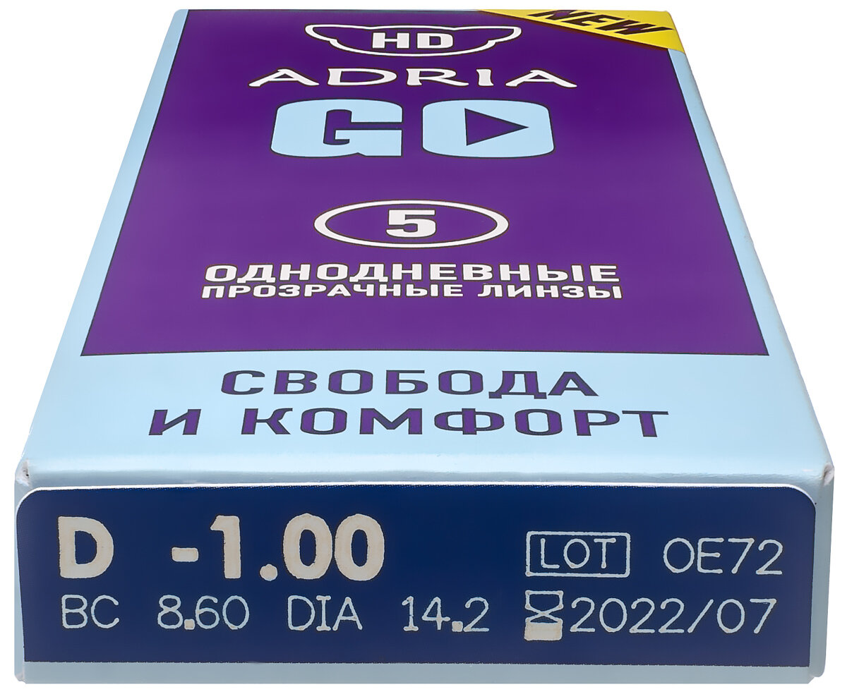 Контактные линзы ADRIA GO, однодневные, -1,00 / 14,2 / 8,6 / 5 шт.