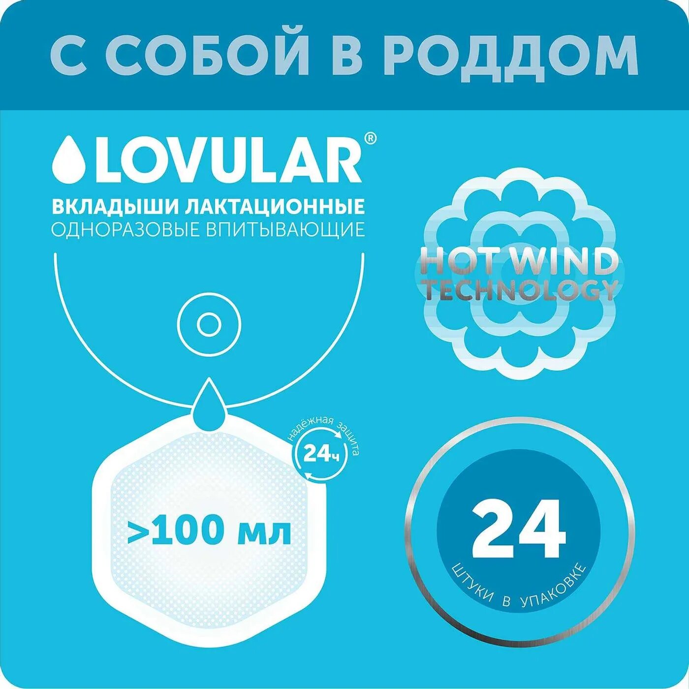 Lovular Hot Wind Вкладыши для груди кормящих мам, 24 шт