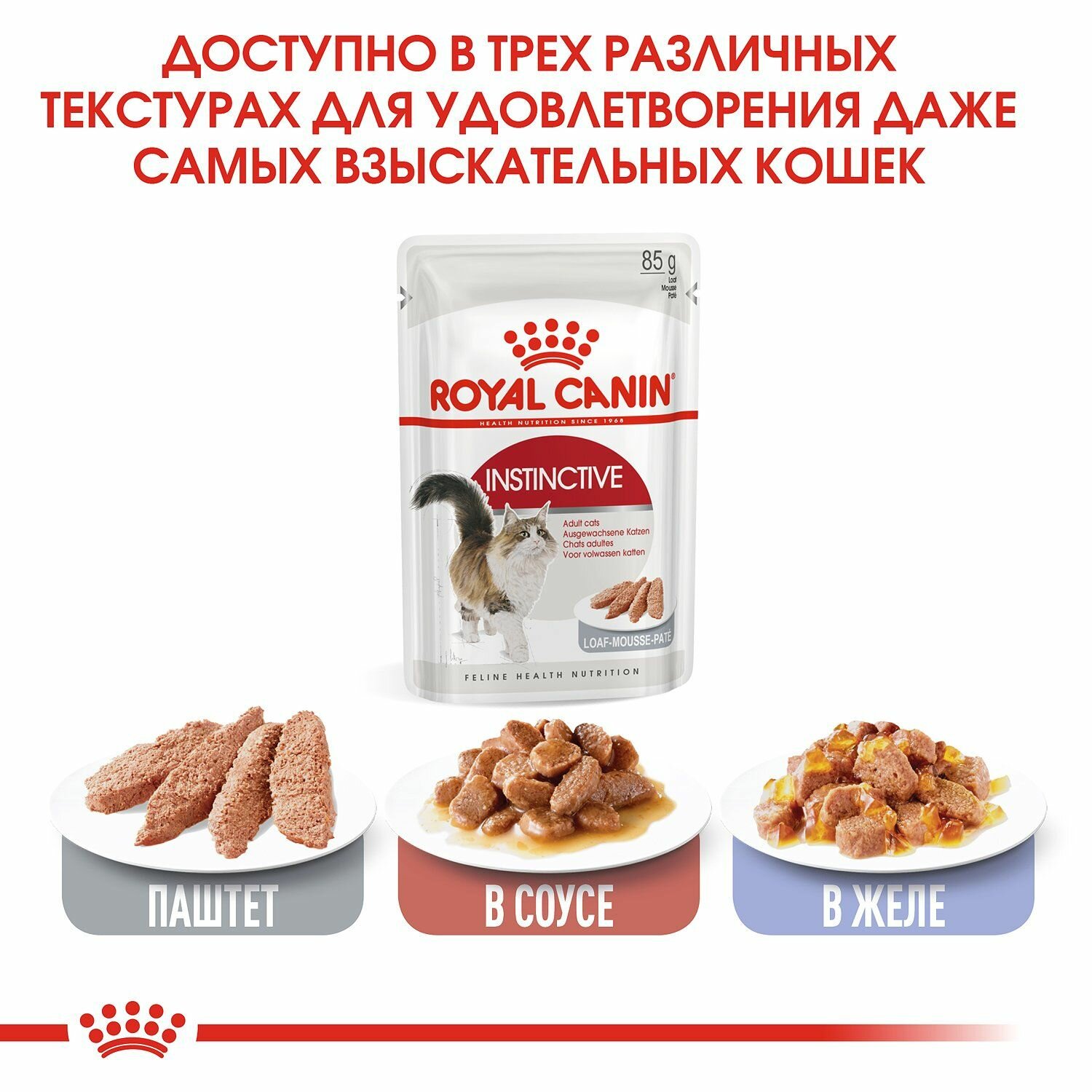 Влажный корм для кошек Royal Canin Instinctive, мясное ассорти 85 г (паштет) интересное: