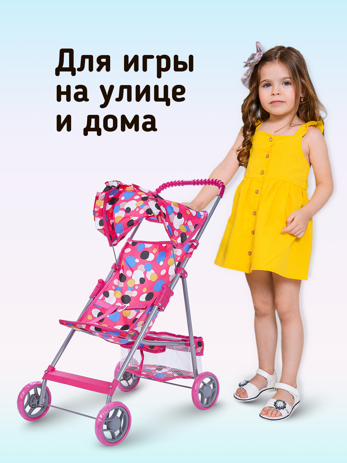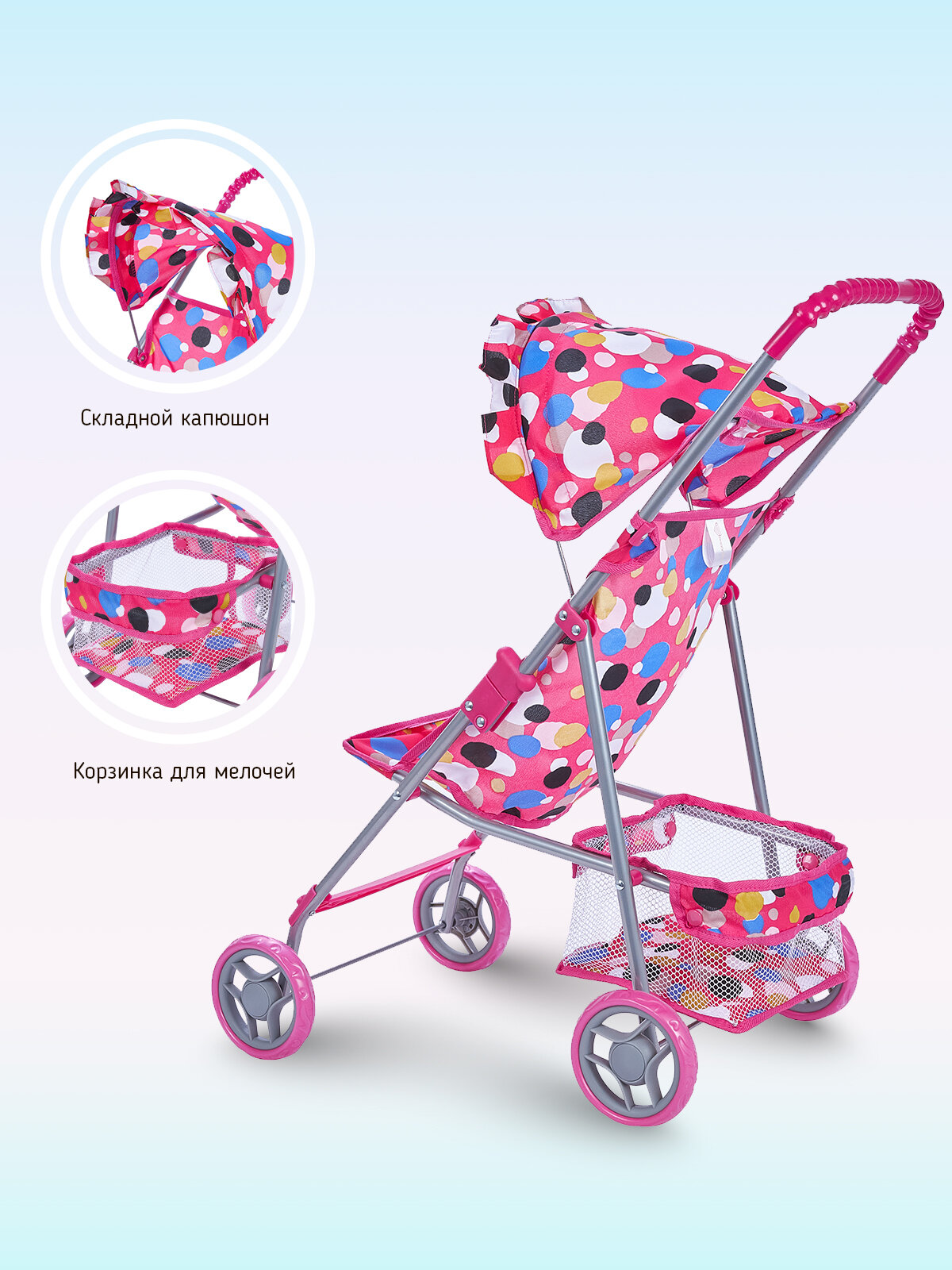 Коляска для кукол, с крышей, ремешками для фиксирования куклы, корзиной, в пакете