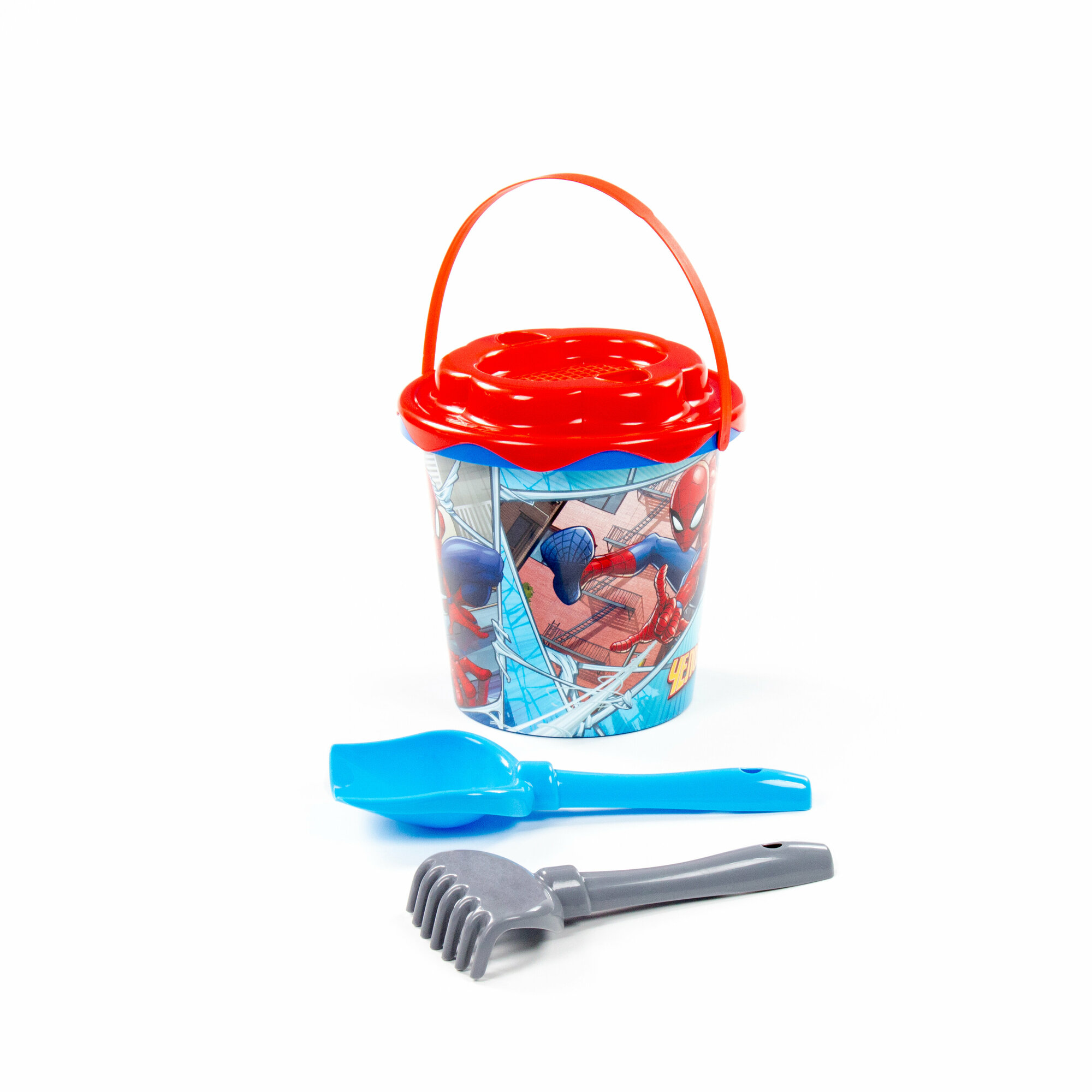 Набор Marvel «Человек-Паук» №11: ведро с наклейкой, ситечко "Солнышко", лопатка №5, грабельки №5