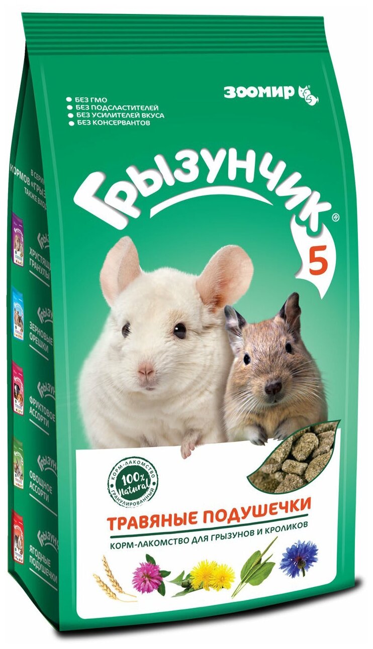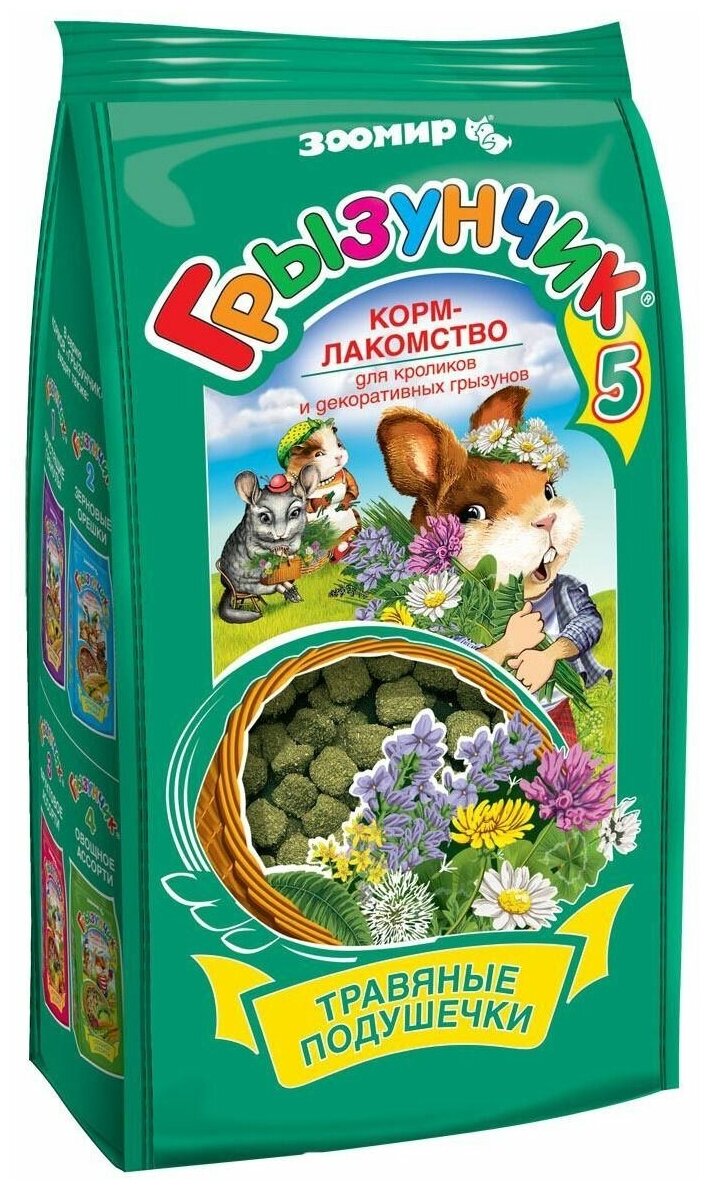 Зоомир Корм-лакомство для кроликов и травоядных грызунов Грызунчик 5 Травяные подушечки 628 0,28 кг 35401