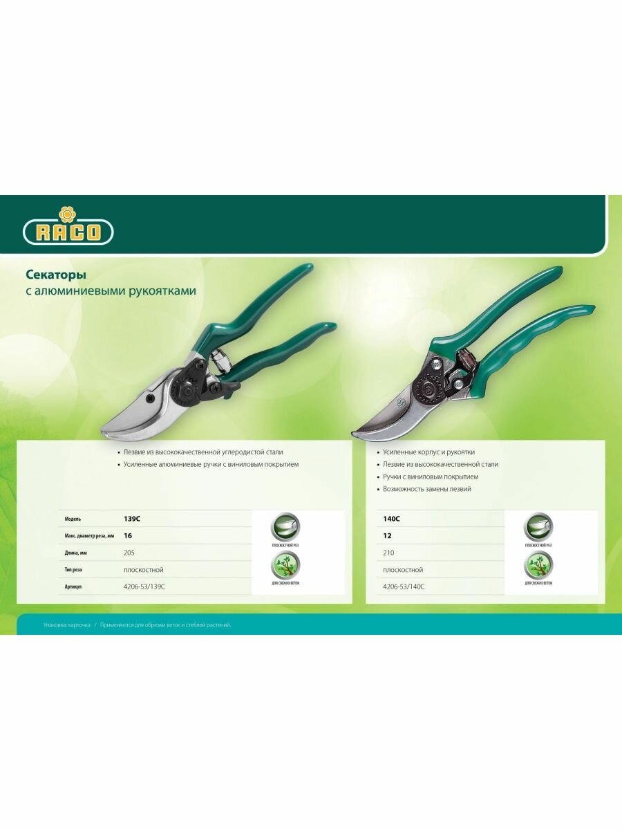 Сохранить140C Секатор с алюминиевыми рукоятками, плоскостной, 205 мм, RACO интересное: