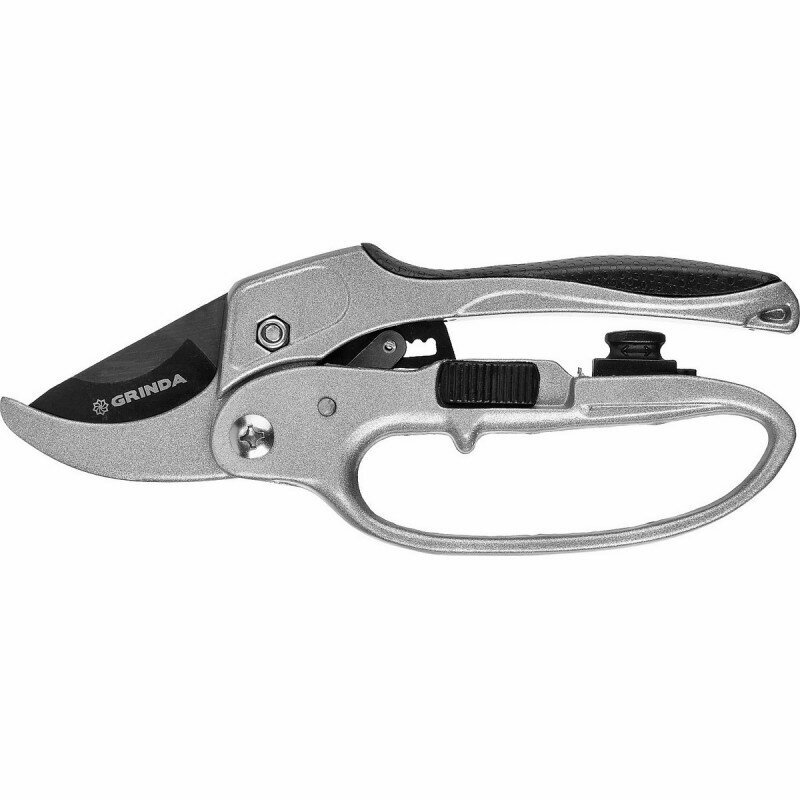 GRINDA G-15, 200 мм, стальные лезвия, храповый механизм, с эфесом, с алюминиевыми рукоятками, контактный секатор (8-423034)