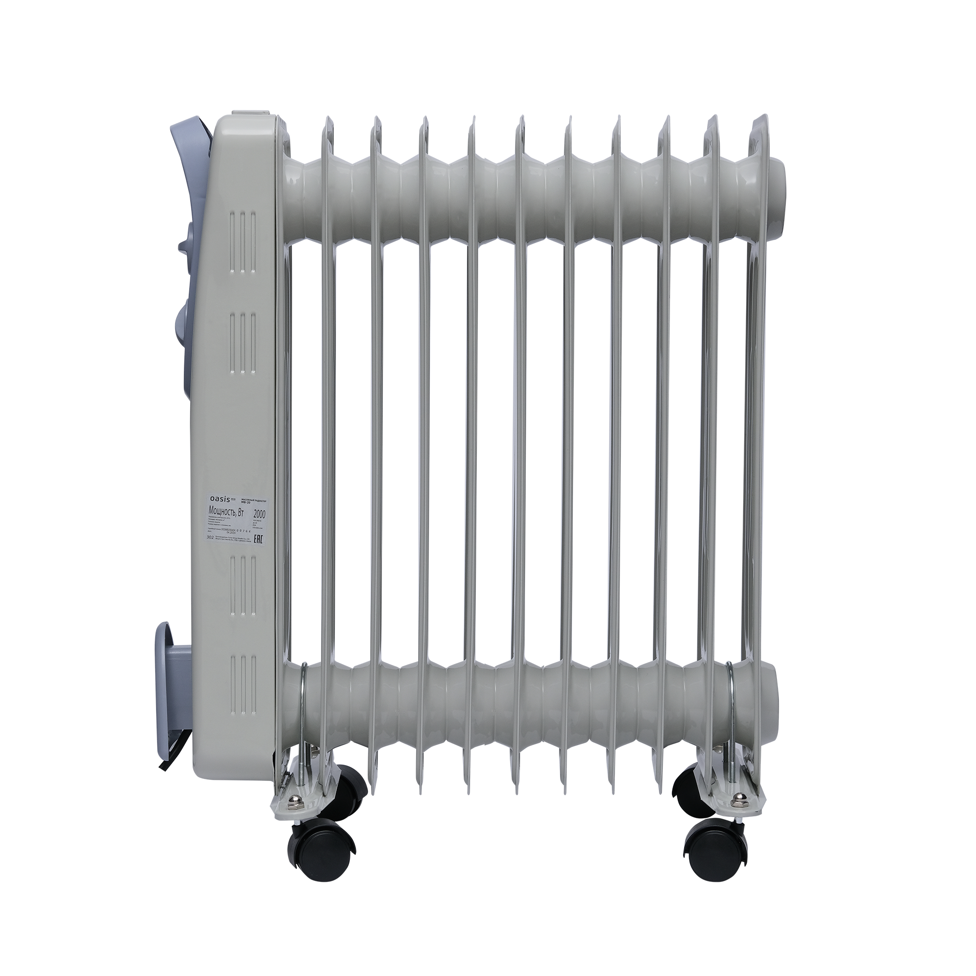 Масляный радиатор Oasis US-20, 2 кВт, 20 м², колеса в комплекте, серый