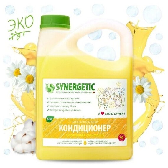 Ниже Вы можете прочитать отзывы на Synergetic Кондиционер для белья Цветочная фантазия 2,75 л, ознакомится с подробными характеристиками, посмотреть интересные обзоры и фотографии на Synergetic Кондиционер для белья Цветочная фантазия 2,75 л.