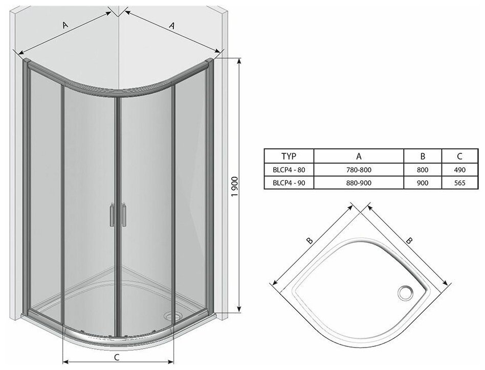 Душевой уголок RAVAK BLIX BLCP4-80 (795х795х1900) раздвиж.двери, стекло, блест.+Transparent AntiCalc