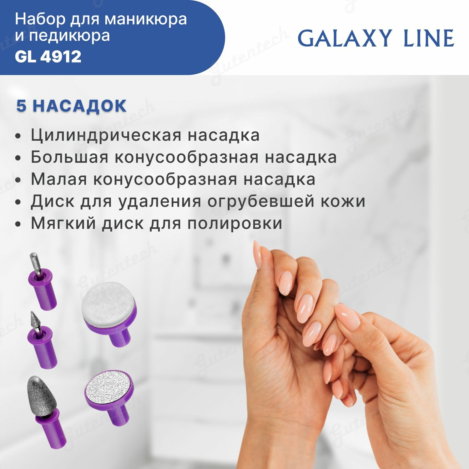 Набор GALAXY Line GL4912 для маникюра и педикюра, войлочные насадки, 2.4 Вт