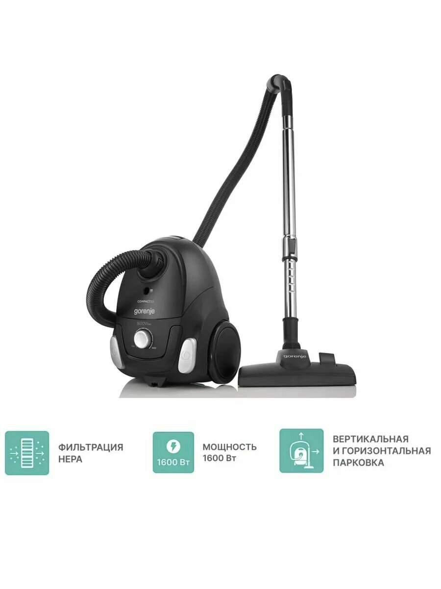 Пылесос с мешком GORENJE Пылесос Gorenje VC1611CXBK 1600Вт черный
