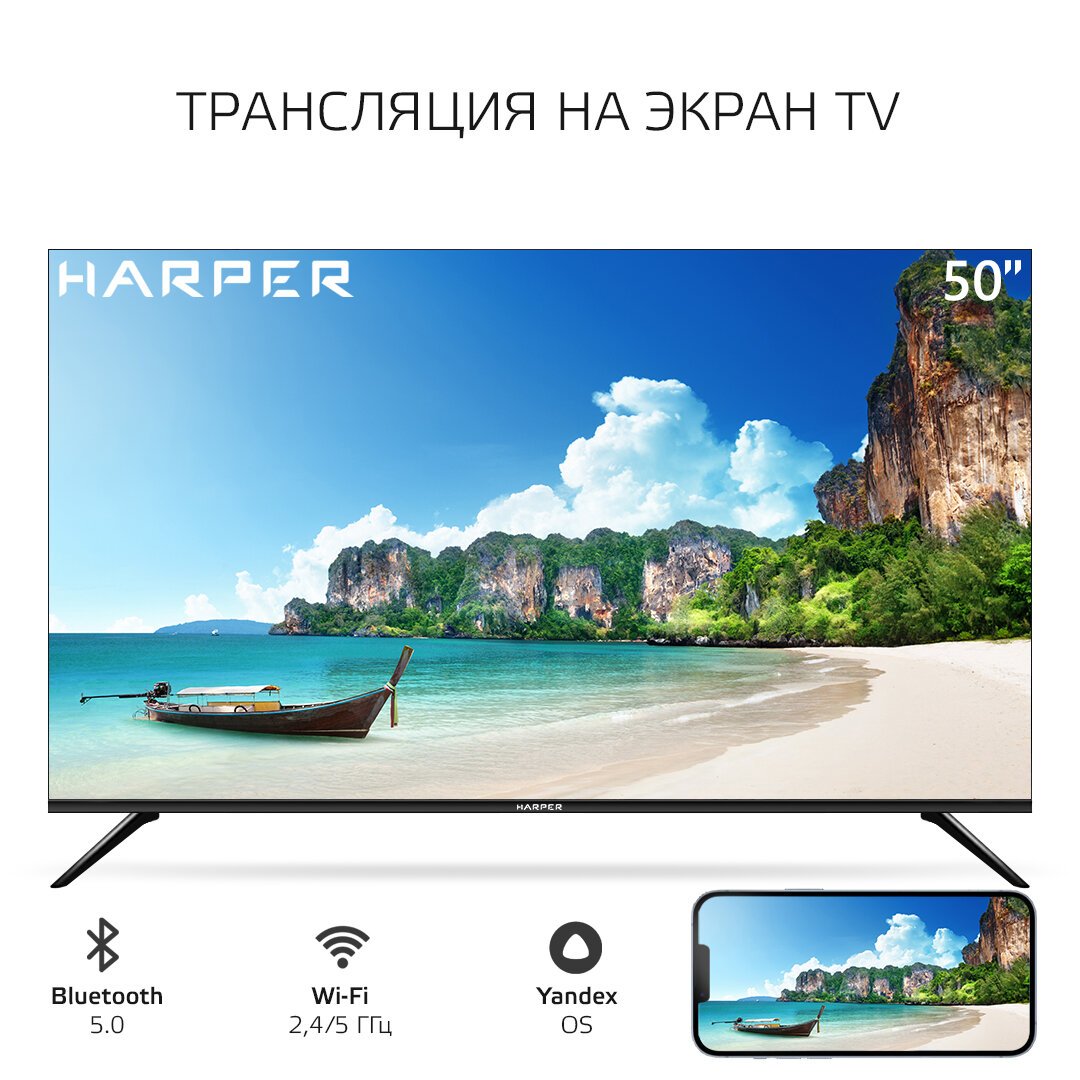 Телевизор HARPER 50U660TS, Smart на платформе Яндекс.ТВ, черный