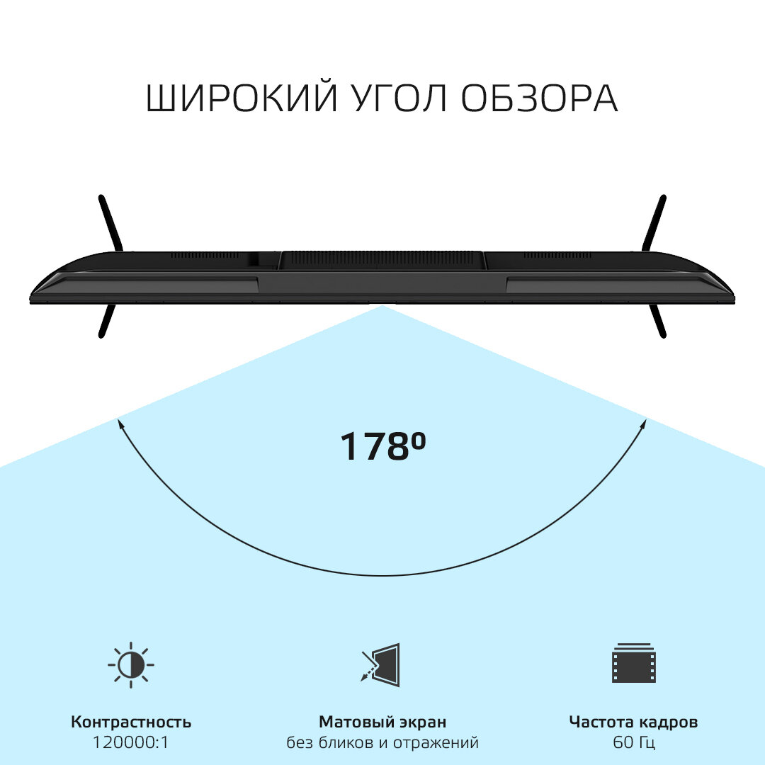 | Отзыв: | Все здесь хорошо. Несмотря на то, что большой экран показывает качественную картинку в формате 4K UHD, как с выходом в интернет, так и без него. Со Smart TV проблем не возникало, не подвисает в процессе. Звук нормальный, что еще сказать, советую. |