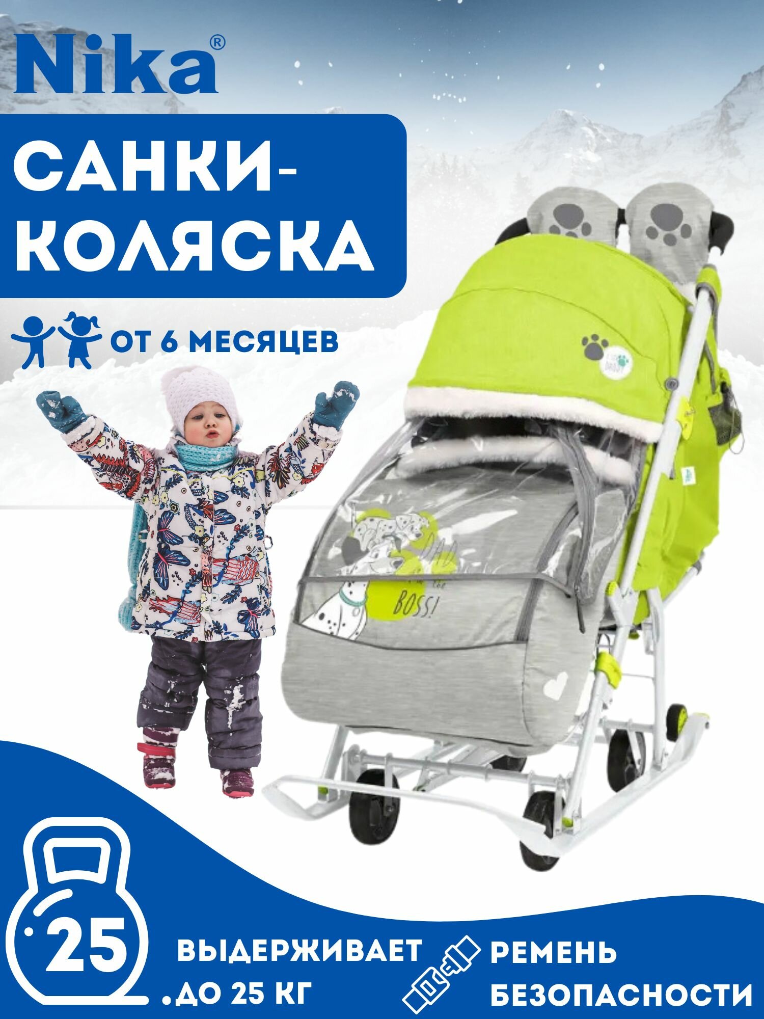 Прогулочные зимние санки-коляска для детей Nika DB2/1