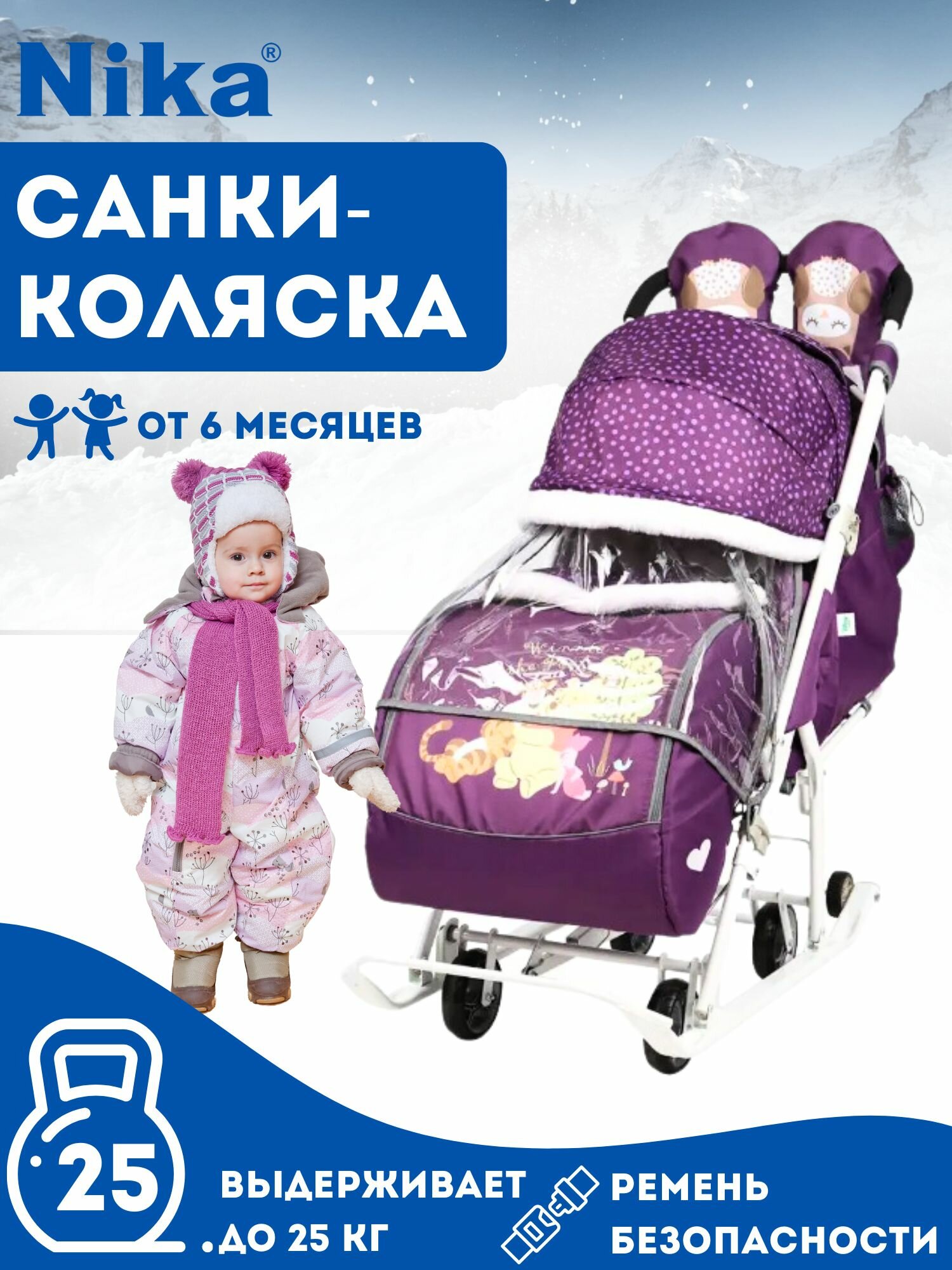 СохранитьСанки-коляска Nika Disney baby 2 DB2, с Винни Пухом баклажановый интересное: