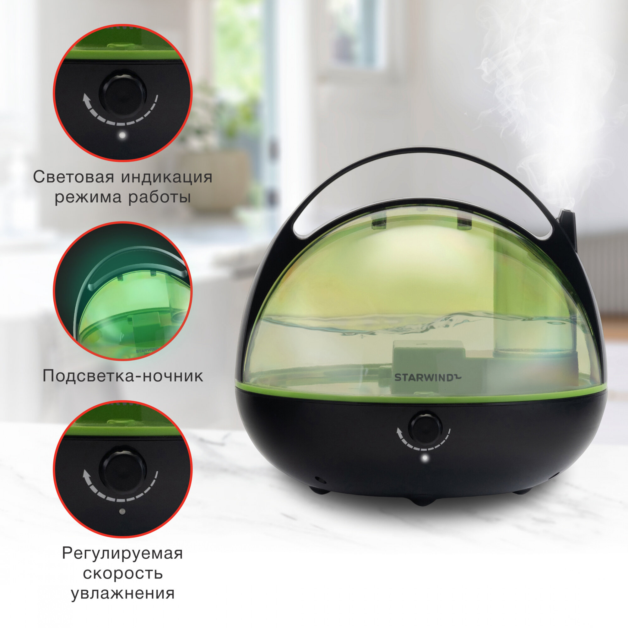 Увлажнитель воздуха Starwind SHC3415 Black/Green