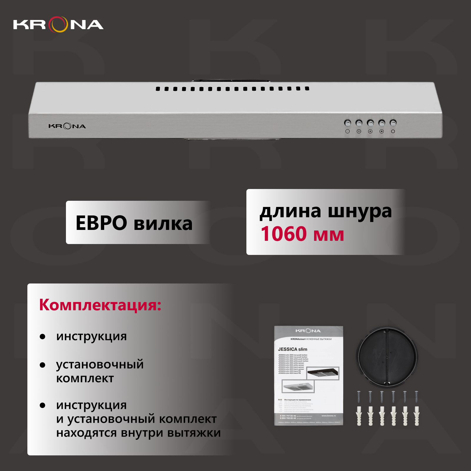 СохранитьВытяжка Krona JESSICA slim 600 inox push button интересное: