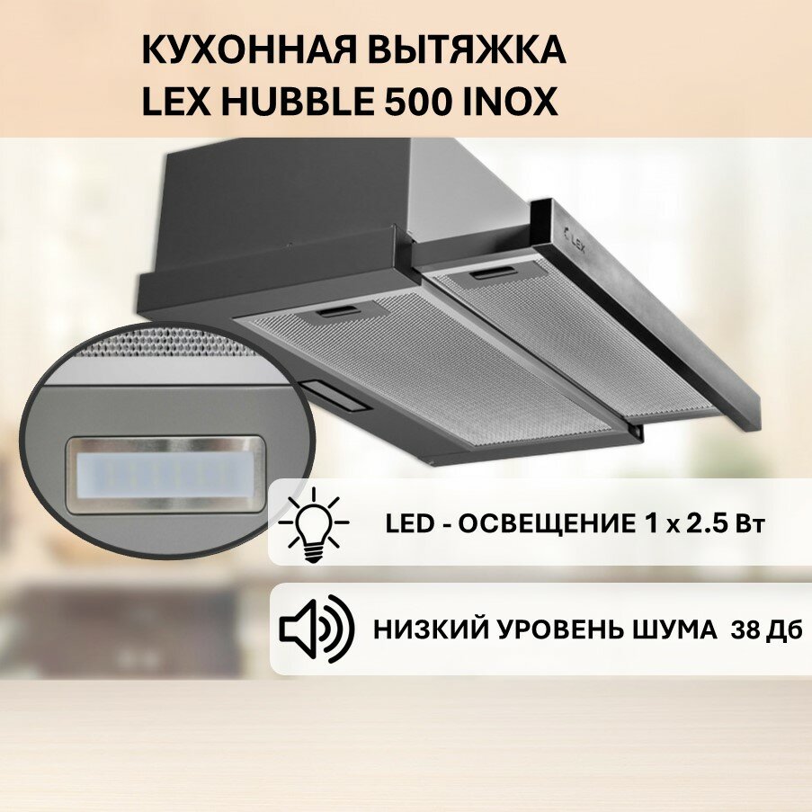 СохранитьВстраиваемая вытяжка LEX Hubble 500 Inox интересное: