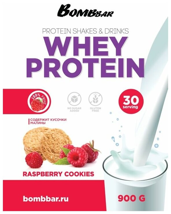 Протеин Bombbar Whey Protein, 900 гр., малиновое печенье