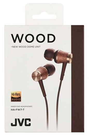 Наушники JVC проводные внутриканальные, модель HA-FW7-T-F, серия WOOD. Цвет: золотой.