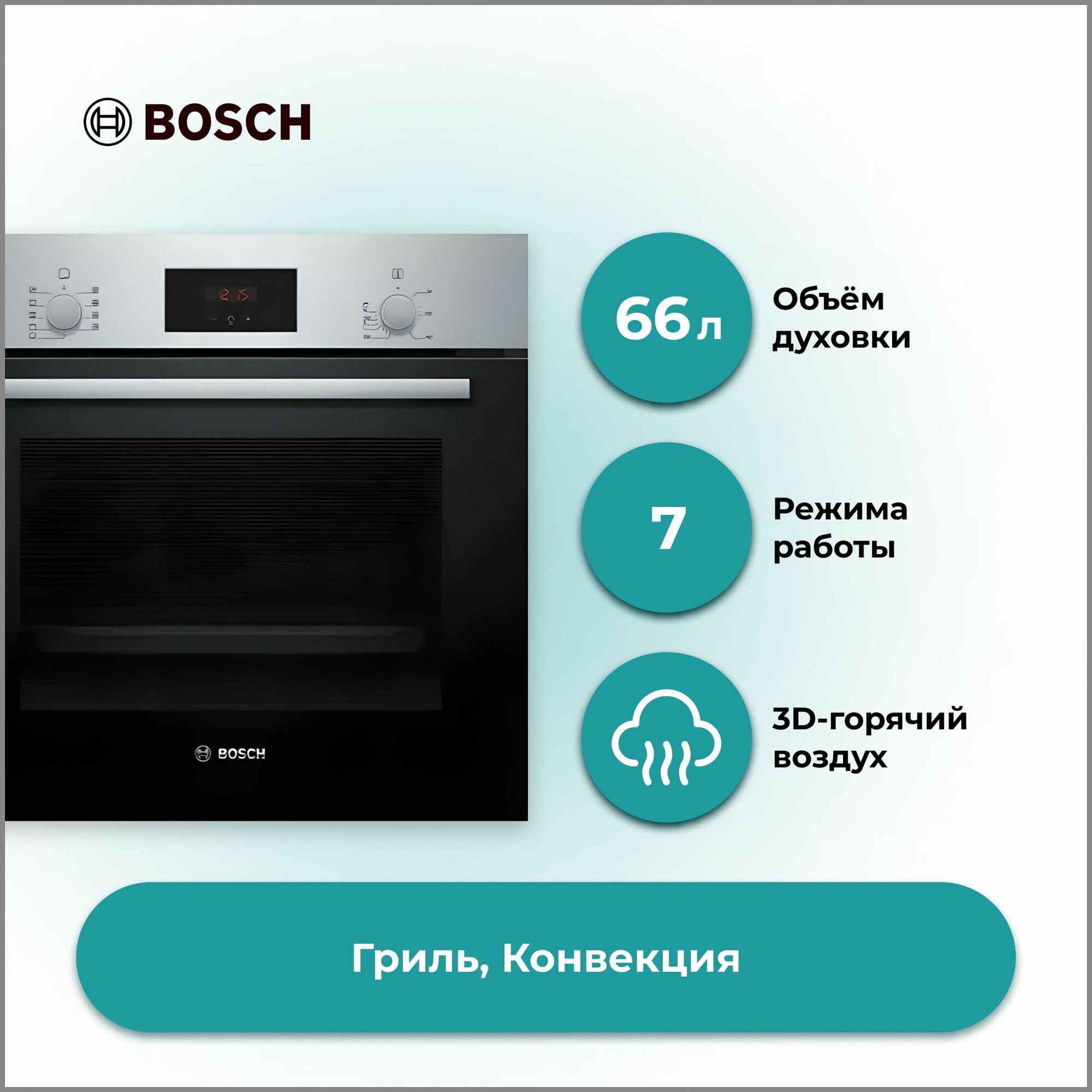 | Дополнительная информация | 3D горячий воздух, режим для пиццы, горячий воздух Gentle, Vario-гриль большой площади нагрева |