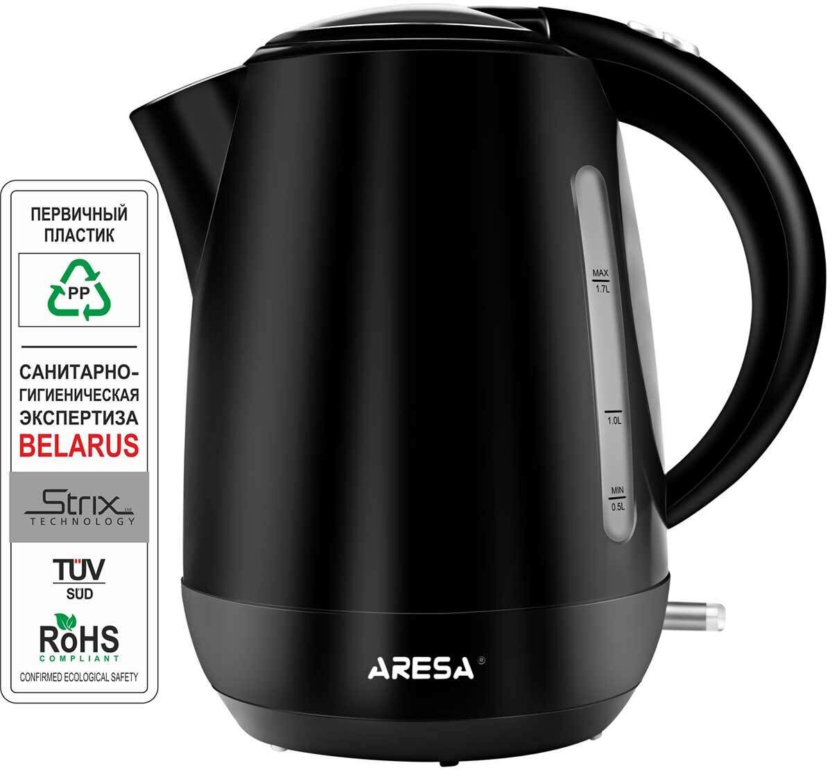 Чайник Aresa AR-3432 (1.7л, 2000Вт, черный, пластик)