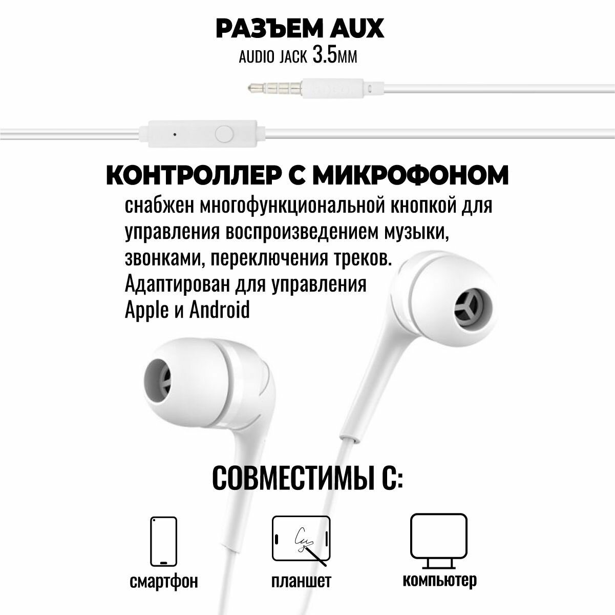 СохранитьНаушники вкладыши с микрофоном Hoco M40 Prosody White мобильная гарнитура, белые интересное: