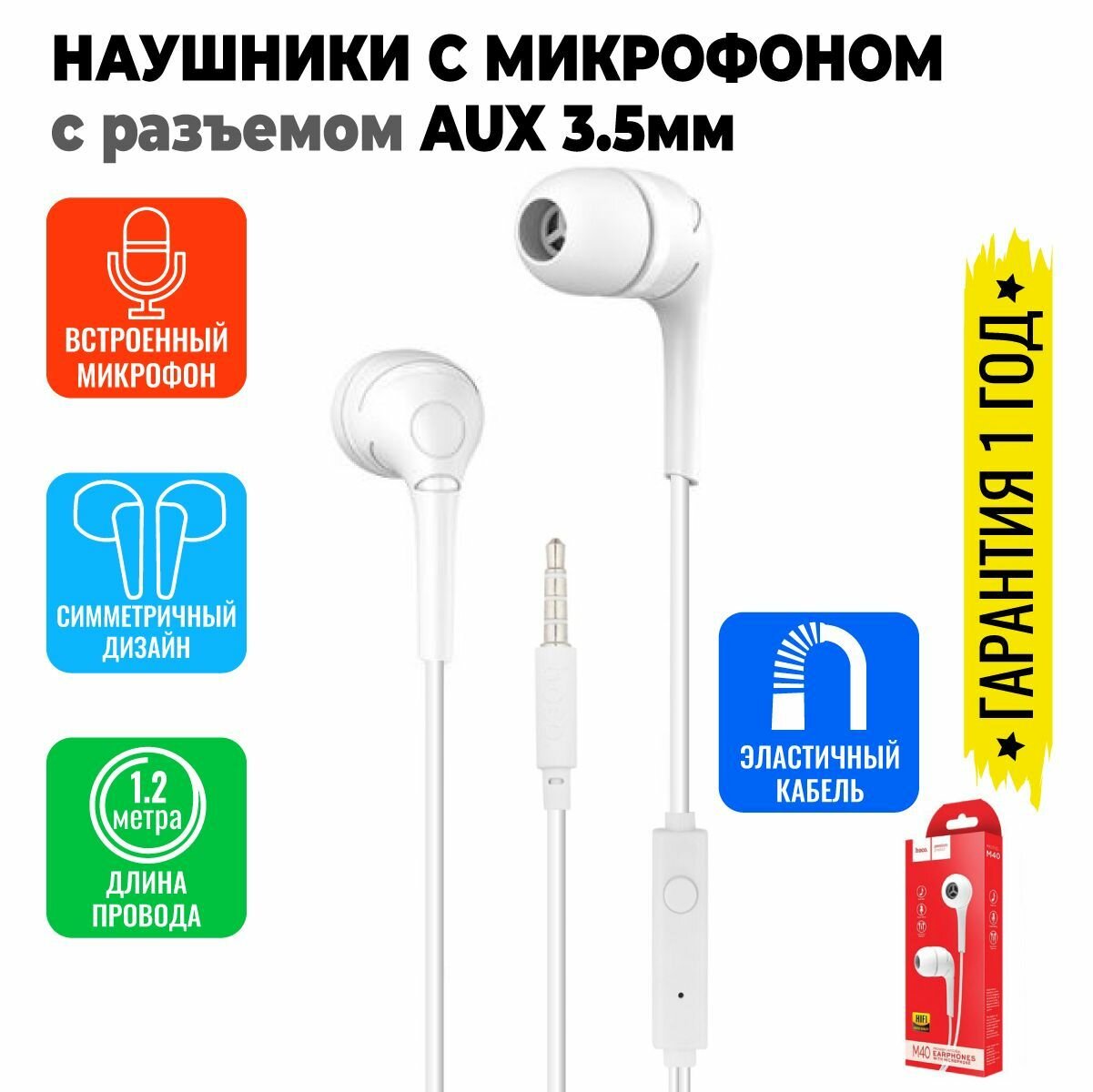 Купить Наушники вкладыши с микрофоном Hoco M40 Prosody White мобильная гарнитура, белые