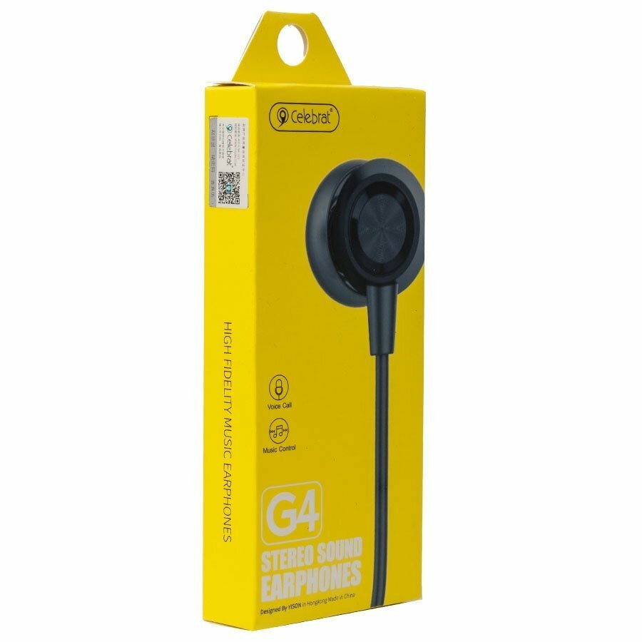 Наушники проводные с микрофоном Celebrat G4, MiniJack 3.5мм, 1.2 метра, черные