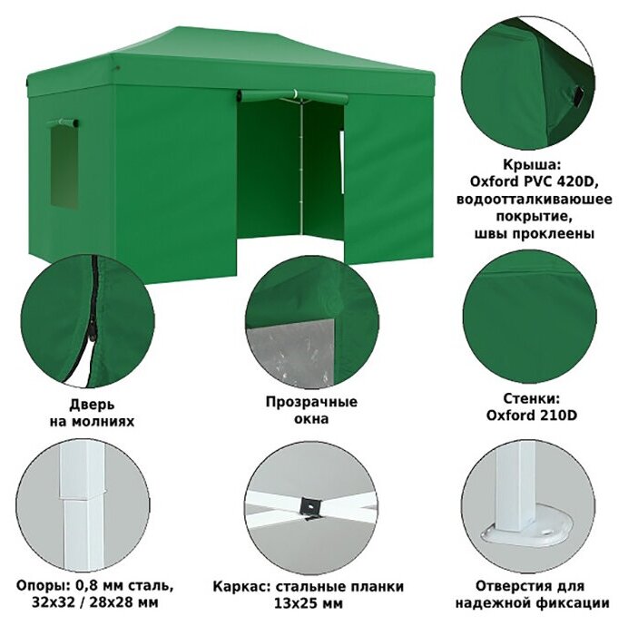 Тент-шатер быстросборный Helex 4336, 3x4,5х3м полиэстер зеленый