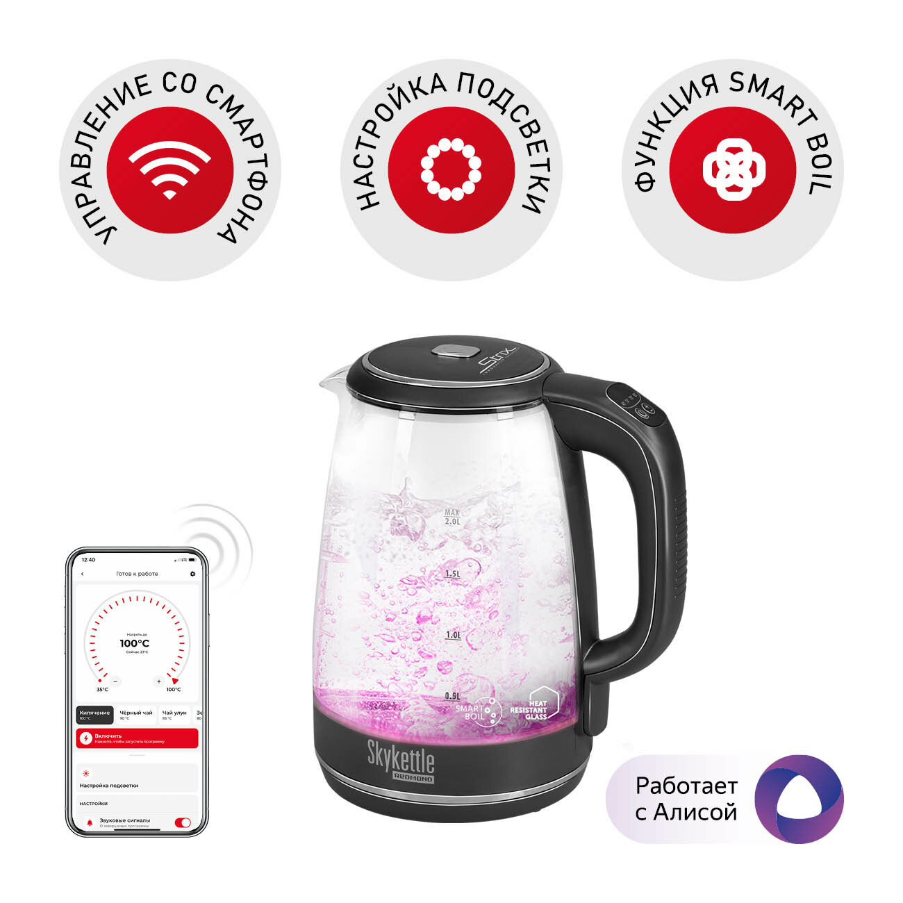 Купить Чайник REDMOND SkyKettle G200S, серебристый/черный