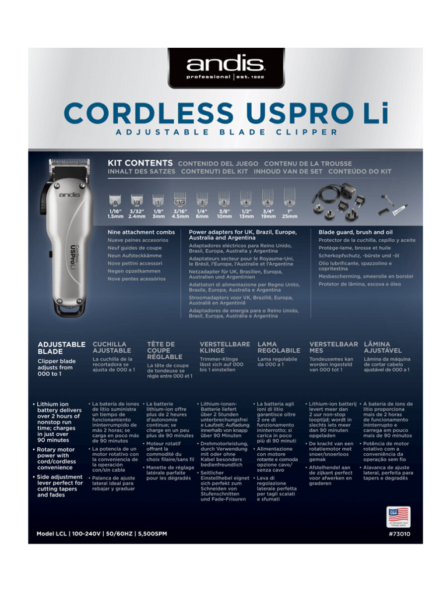 Ниже Вы можете прочитать отзывы на Аккумуляторно-Сетевая машинка для стрижки волос usPRO™ Li Lcl, Andis, ознакомится с подробными характеристиками, посмотреть интересные обзоры и фотографии на Аккумуляторно-Сетевая машинка для стрижки волос usPRO™ Li Lcl, Andis.