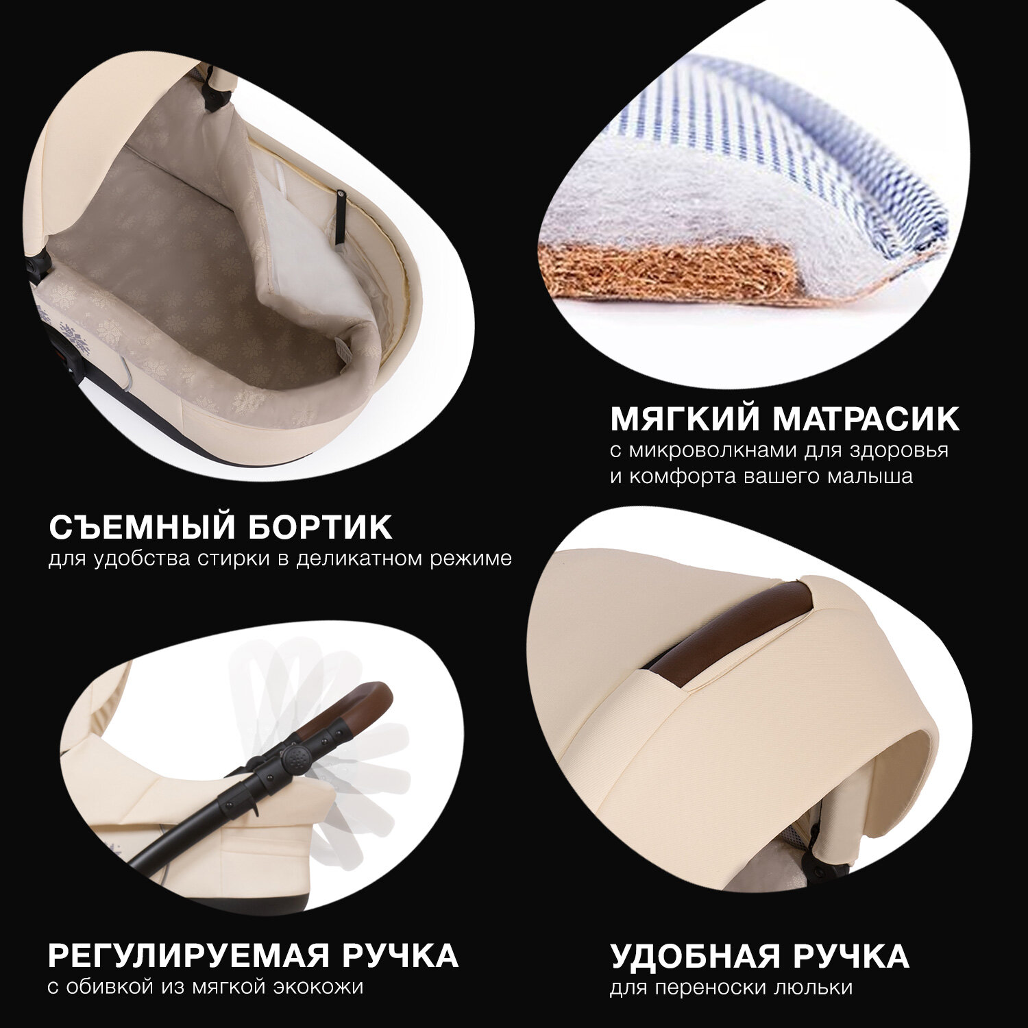В целом дизайн, размеры люльки, материал коляски все замечательно. |