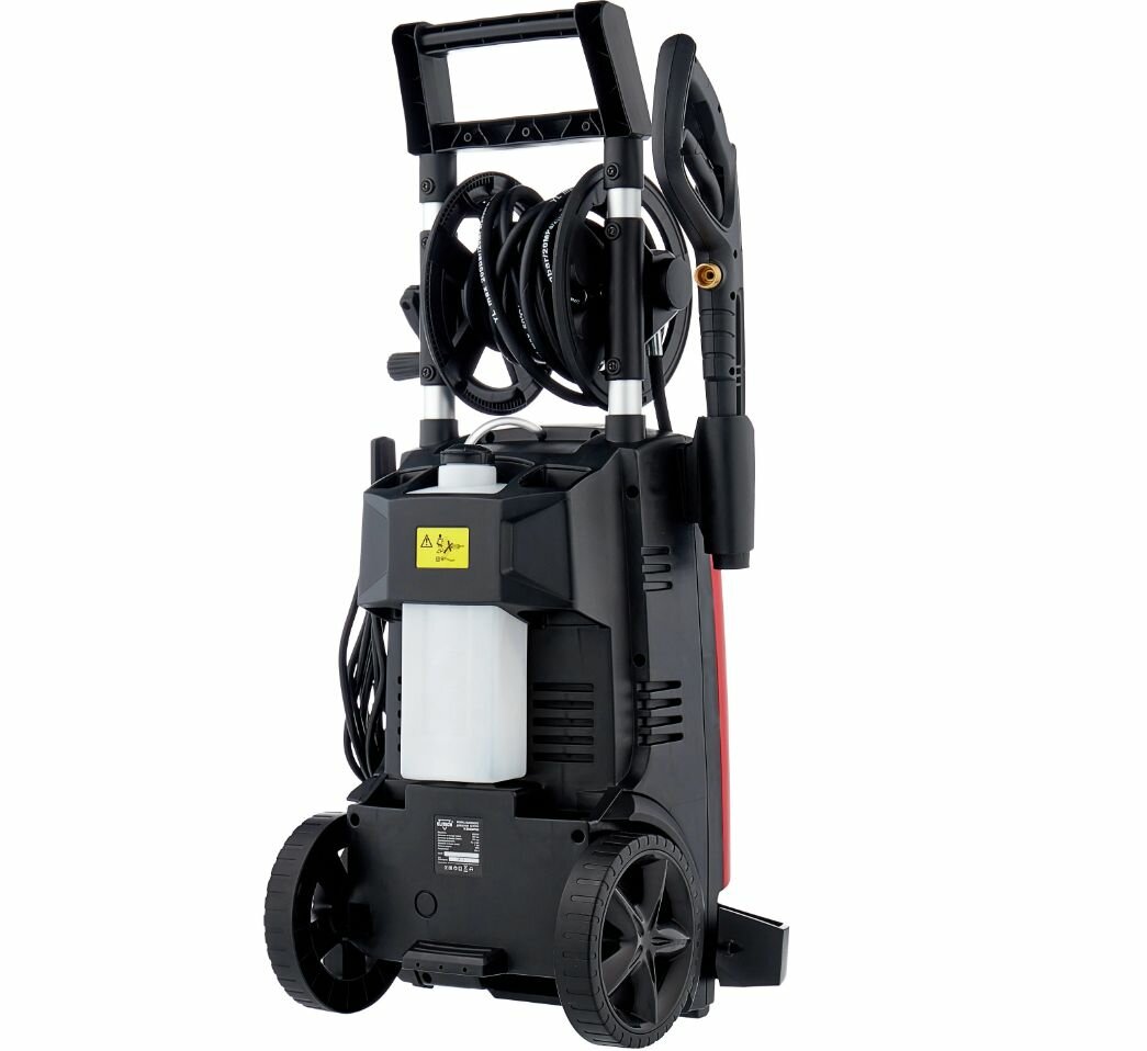 | Минусы: | Очень тяжелая.Ручка на катушке шланга очень хлипкая.Не удобно сматывать шланг.Пенообразователь. |