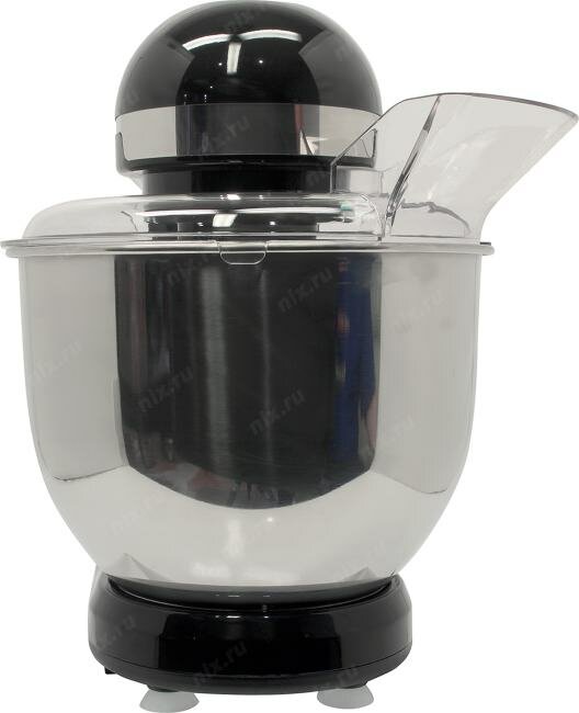 | Плюсы: | Наличие нескольких насадок для замешивания разного теста, вместительная чаша, крышка от брызг. |