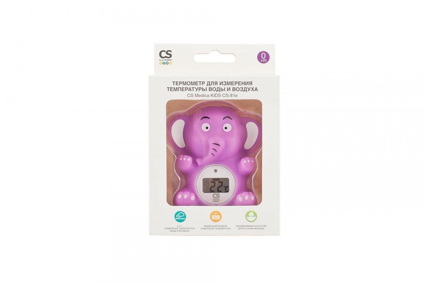 Безртутный термометр для измерения температуры воды и воздуха CS Medica KIDS CS-81e в форме игрушки "Слоник" фиолетовый