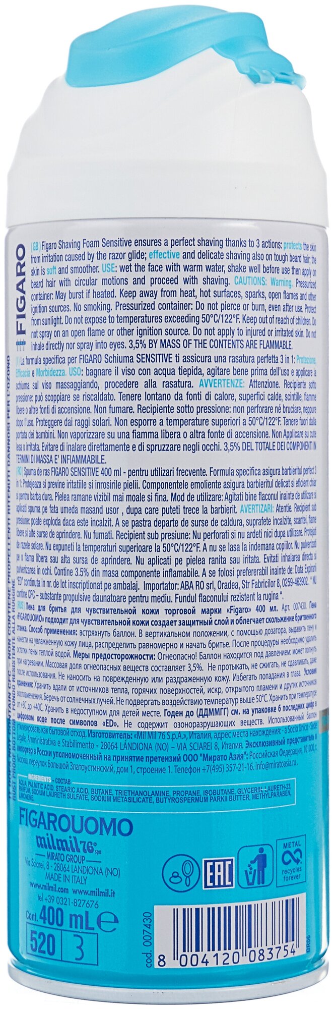 Figaro Sensitive Пена для бритья, для чувствительной кожи, 400 мл