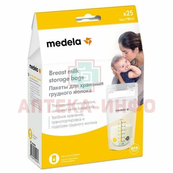 Медела Пакеты для хранения грудного молока одноразовые полимерные 180мл N25